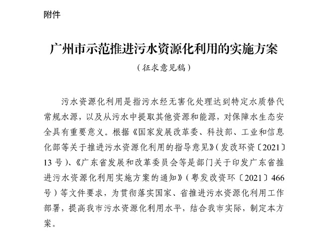 广州市示范推进污水资源化利用的实施方案(征求意见稿)发布!